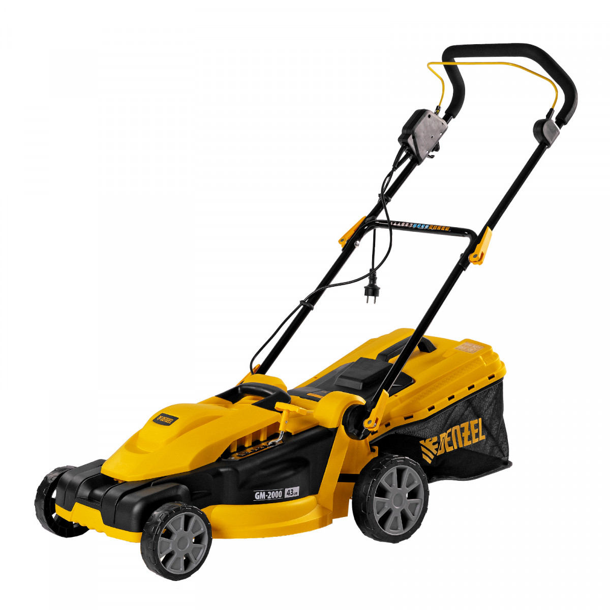 Газонокосилка электрическая GM-2000, 2000 Вт, ширина 43 см, 6 уровней, травосборник 45 л. Denzel