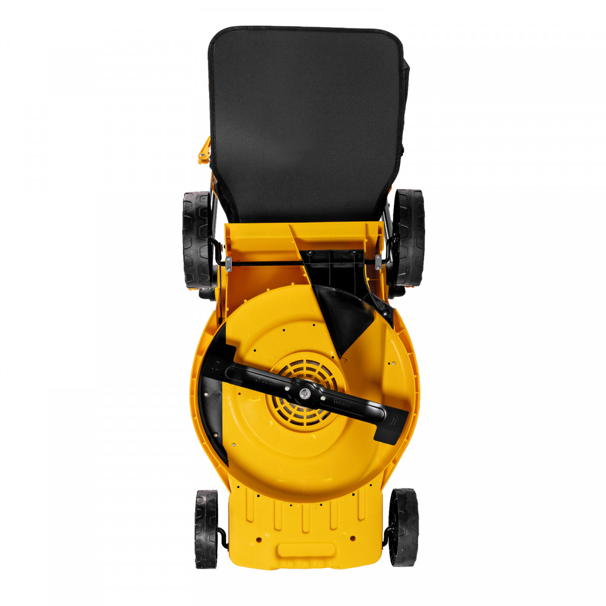 - Маневренность — широкие колеса позволяют удобно перемещать газонокосилку по участку и не приминают траву.