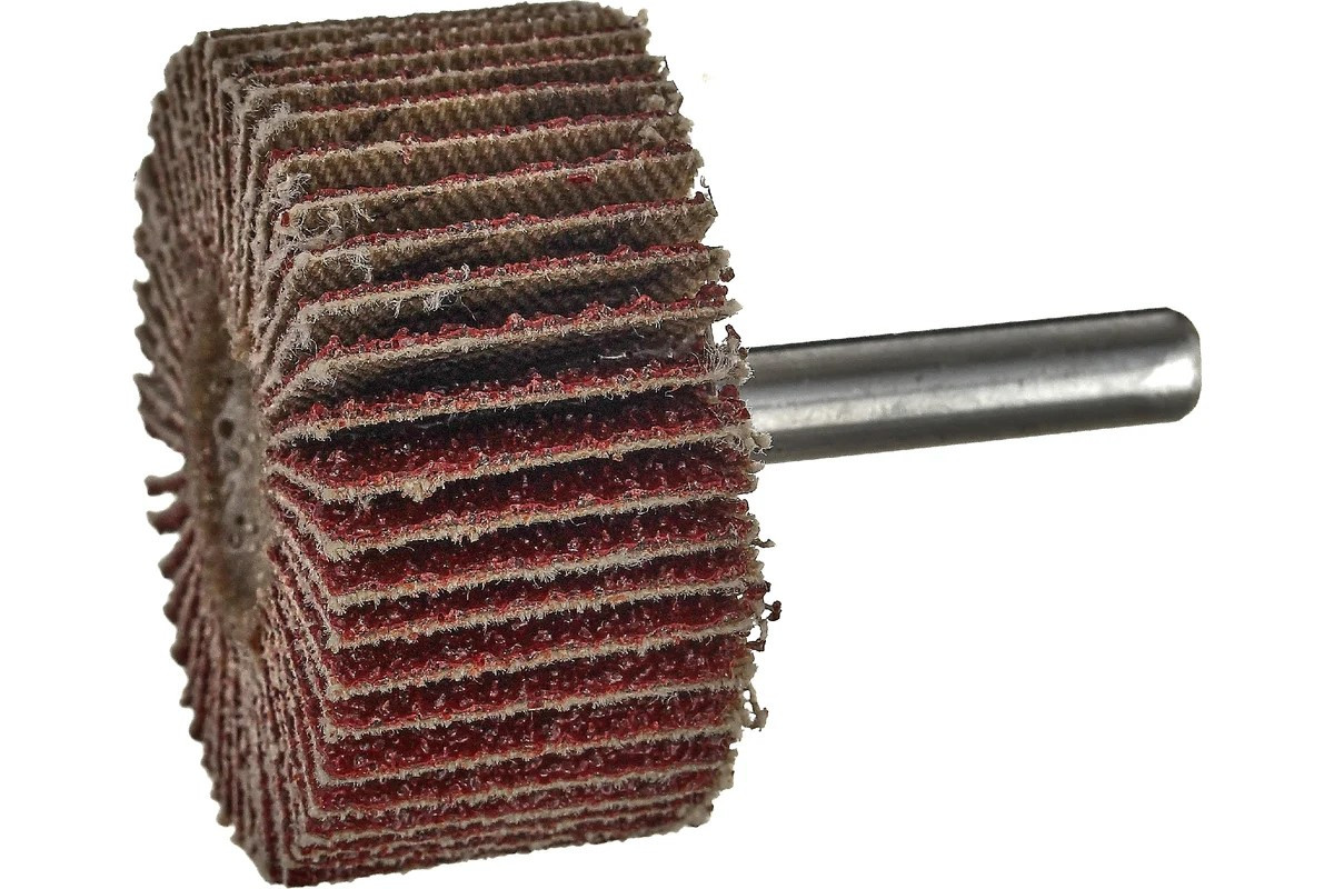 Круг лепестковый абразивный комбинированный с оправкой, диаметр 80 мм, ширина 30 мм, диаметр хвостовика 6 мм, зерно P60. Применяется с дрелью или прямой шлифмашиной и служит для финишной обработки поверхностей из металла, пластика, снятия старой краски, ржавчины и лака.