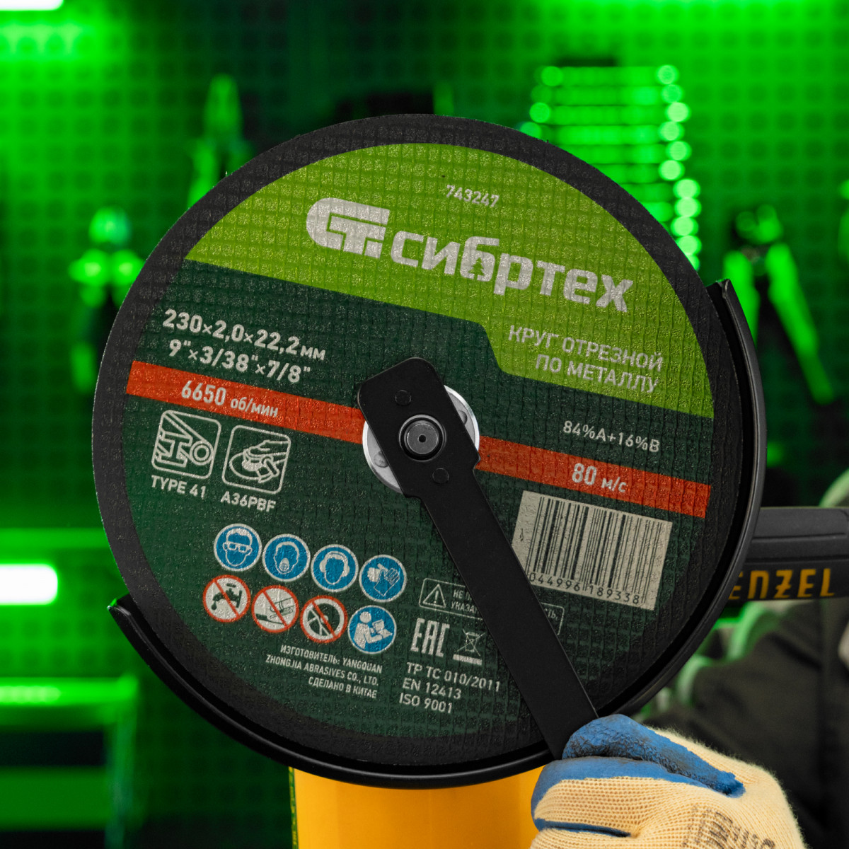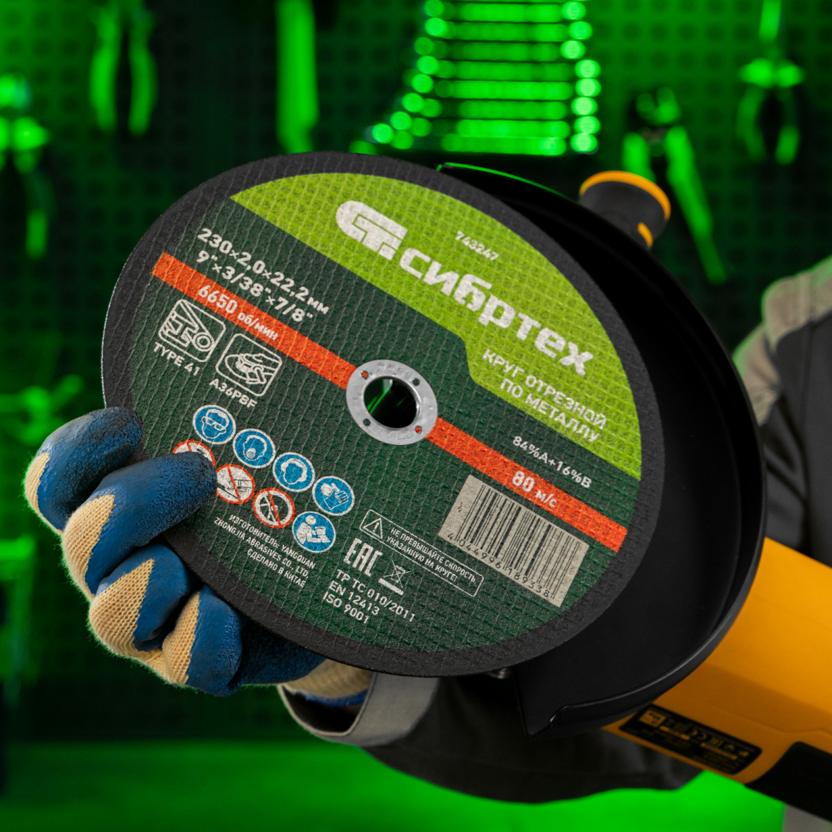Круг отрезной по металлу, 230 х 2,0 х 22,2 мм, 84%A+16%B, в пленке, 10 шт Сибртех