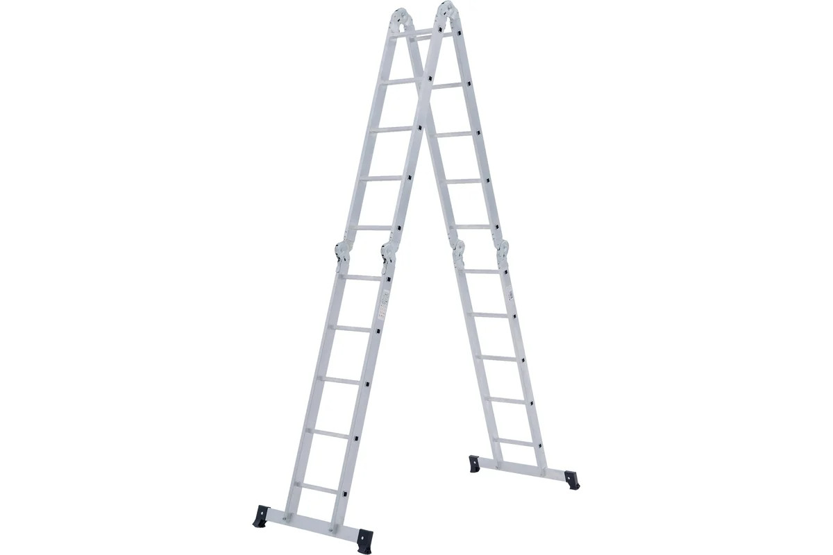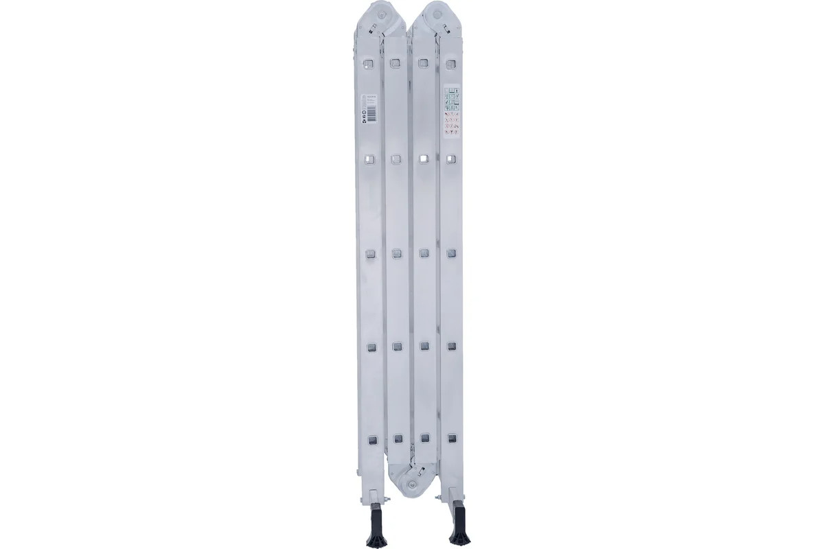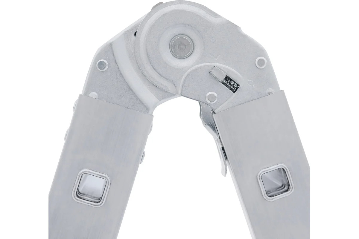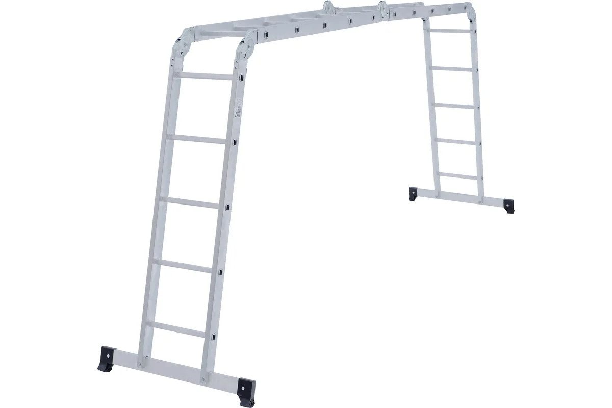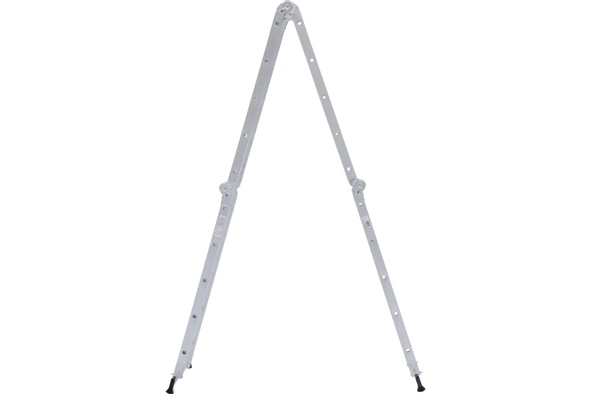 Четырехсекционная лестница-трансформер Новая Высота 4х5 1320405 предназначена для бытового использования. Легко трансформируется в помост, стремянку, приставную лестницу, лестницу с выносом. Оснащена стойками с дополнительным усилением в наиболее нагруженных местах для повышения жесткости. Шарнирные замки регулируются одной рукой. Благодаря многократной развальцовке в соединении ступеней со стойками изделие имеет долгий срок службы.