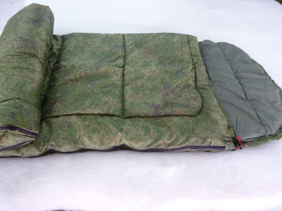 Спальный мешок типа "Одеяло" снабжен капюшоном анатомической формы, затягивающейся стяжкой со стопором. Фиксатор – липучка на конце молнии.