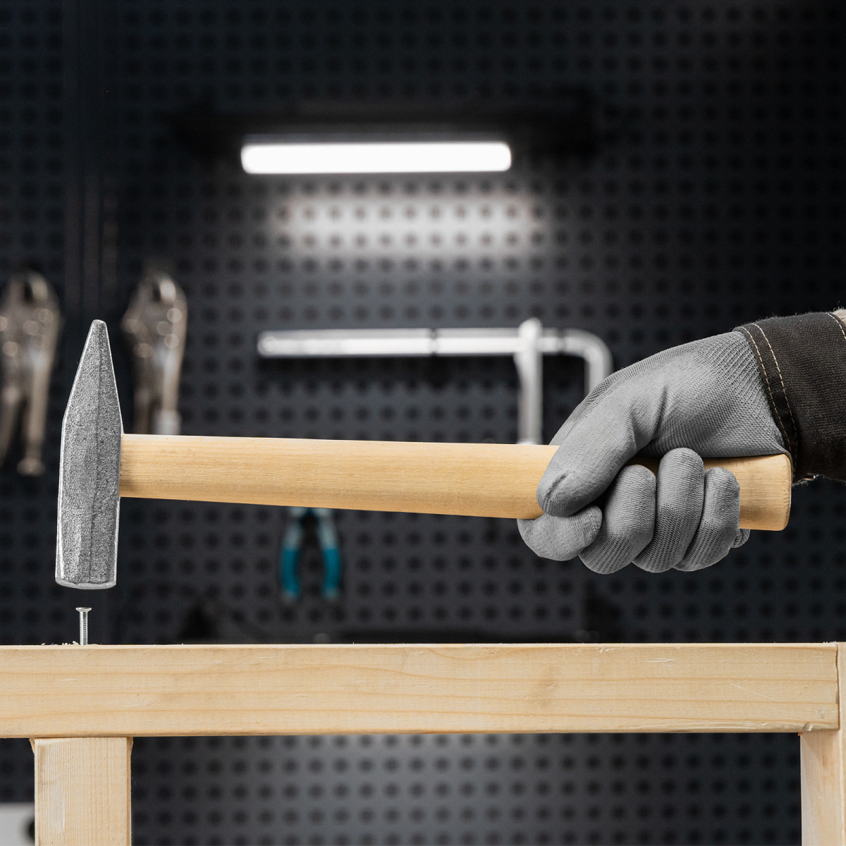 Молоток слесарный, 400 г, квадратный боек, деревянная рукоятка