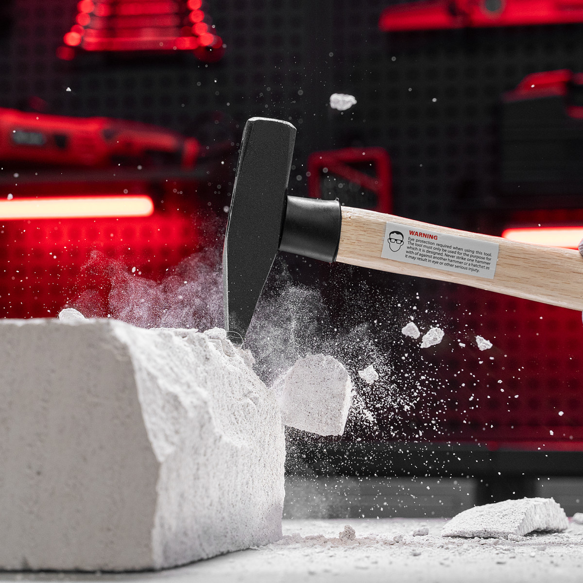 • Надежная конструкция — рукоятка расклинена, головка дополнительно зафиксирована эпоксидным клеем, увеличенная «юбка» в месте всада защищает рукоятку в случае промаха при ударе.