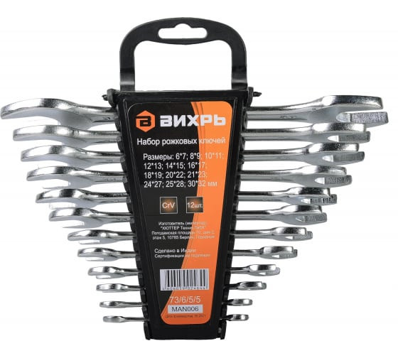 Набор рожковых ключей 12 штук 6 - 32 Вихрь 73/6/5/5 представляет собой полный комплект для работы с шестигранным крепежом.