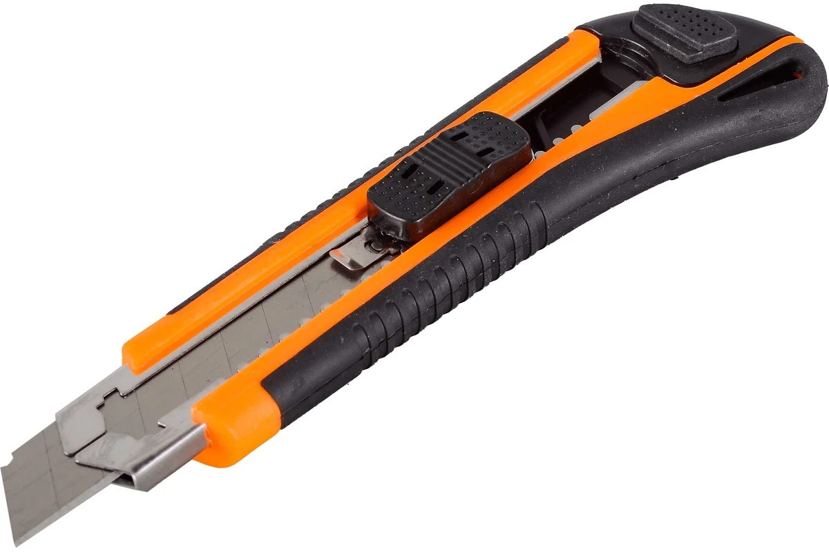 Нож с выдвижным лезвием 18 мм двухкомпонентный корпус автоматический фиксатор ВИХРЬ