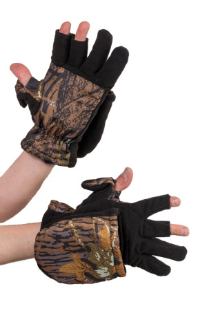 при снятии теплой верхней рукавички на руке остается перчатка, без указательного пальца и с прорезью для освобождения большого пальца руки