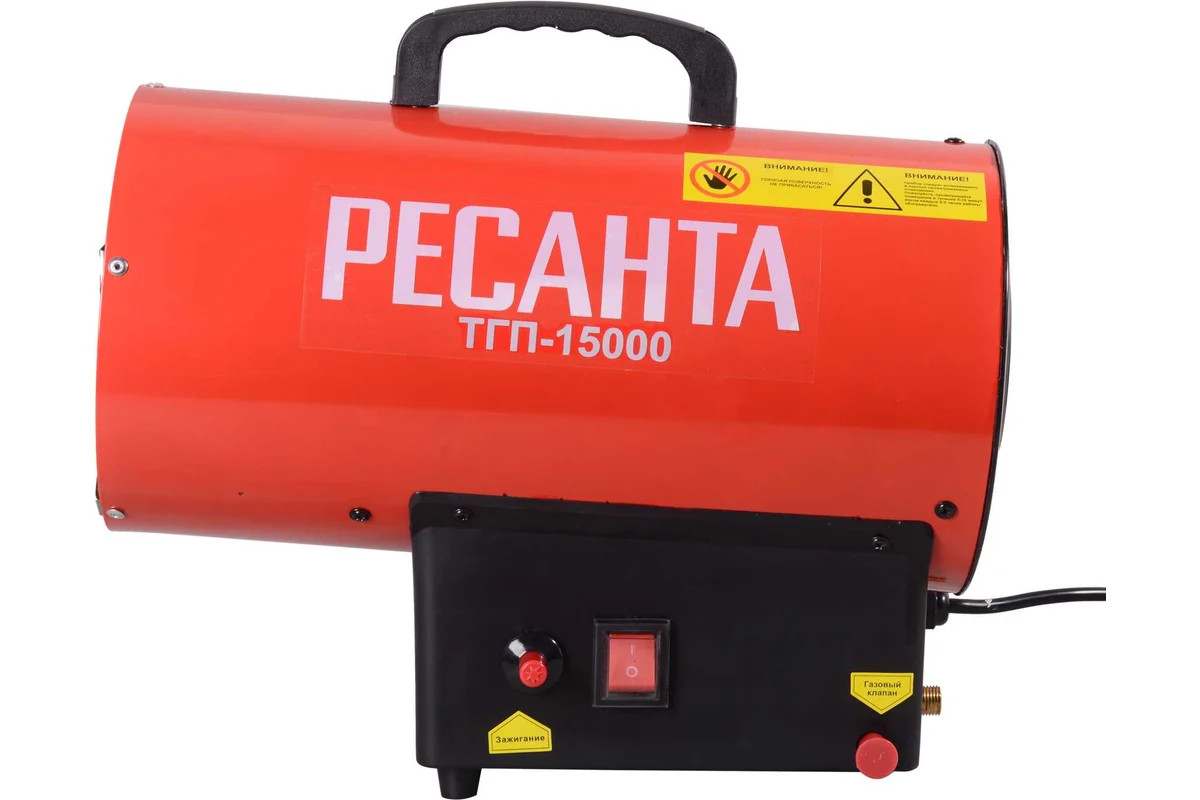 Теплопушка Ресанта ТГП-15000 - это высокопроизводительный воздухонагреватель, который работает на сжиженном газе. Благодаря высокой мощности, хорошо подходит для обогрева помещений большой площади.
