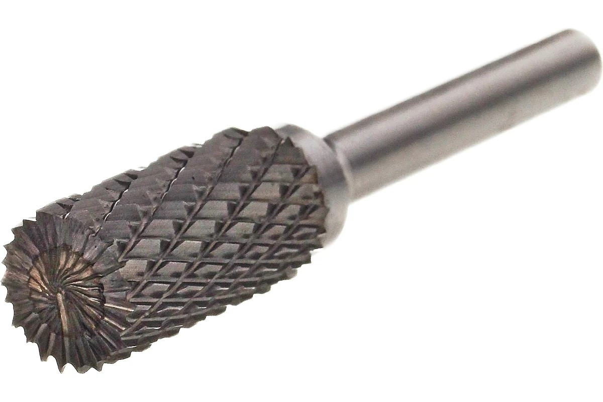 Твердосплавная бор-фреза применяется на электрических и пневматических прямых шлифовальных машинках с цангой 6 мм.Предназначена для удаления заусенцев, обработки фасок, кромок отверстий, обработки сварных швов в труднодоступных местах.Двойная насечка (DC) позволяет обрабатывать легированные, нержавеющие стали и даже чугун.Форма: Цилиндр с торцевыми зубьями.