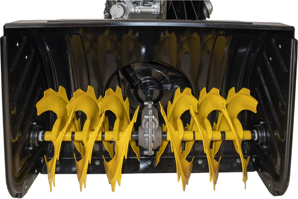 - Прочные металлические лопасти шнека позволяют легко измельчить примерзший снег
