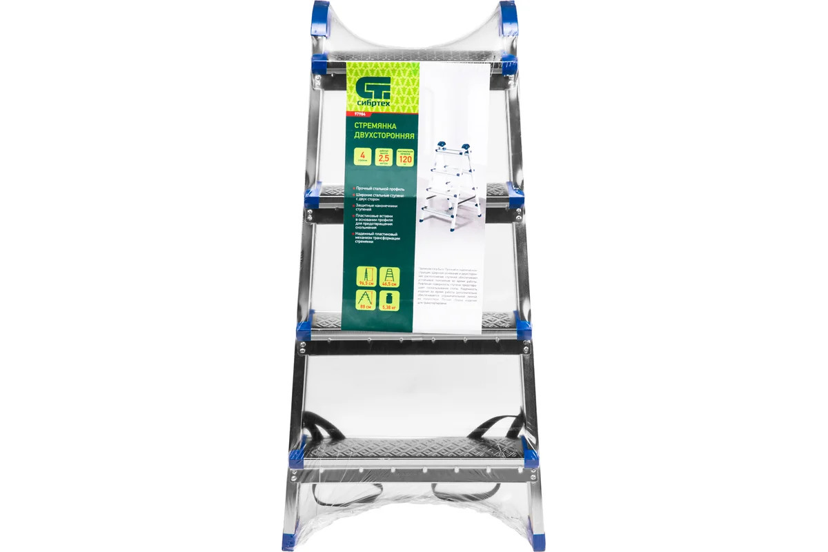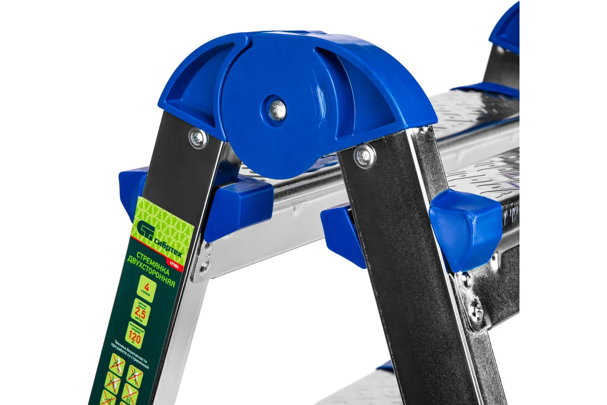 Стремянка двухсторонняя 4 ст., сталь профиль, стальные ступени, Россия// Сибртех