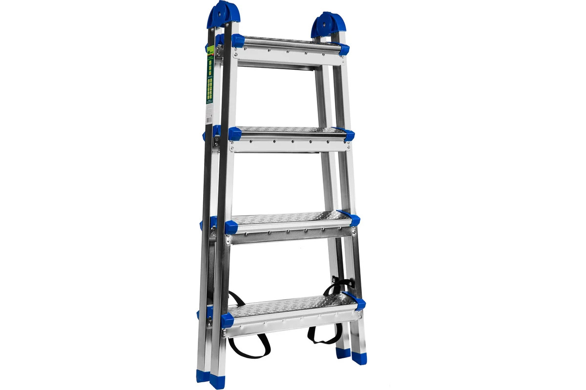 - Удобная транспортировка — стремянка весом 5,5 кг легко складывается, ее размеры в сложенном состоянии 965 х 465 х 160 мм