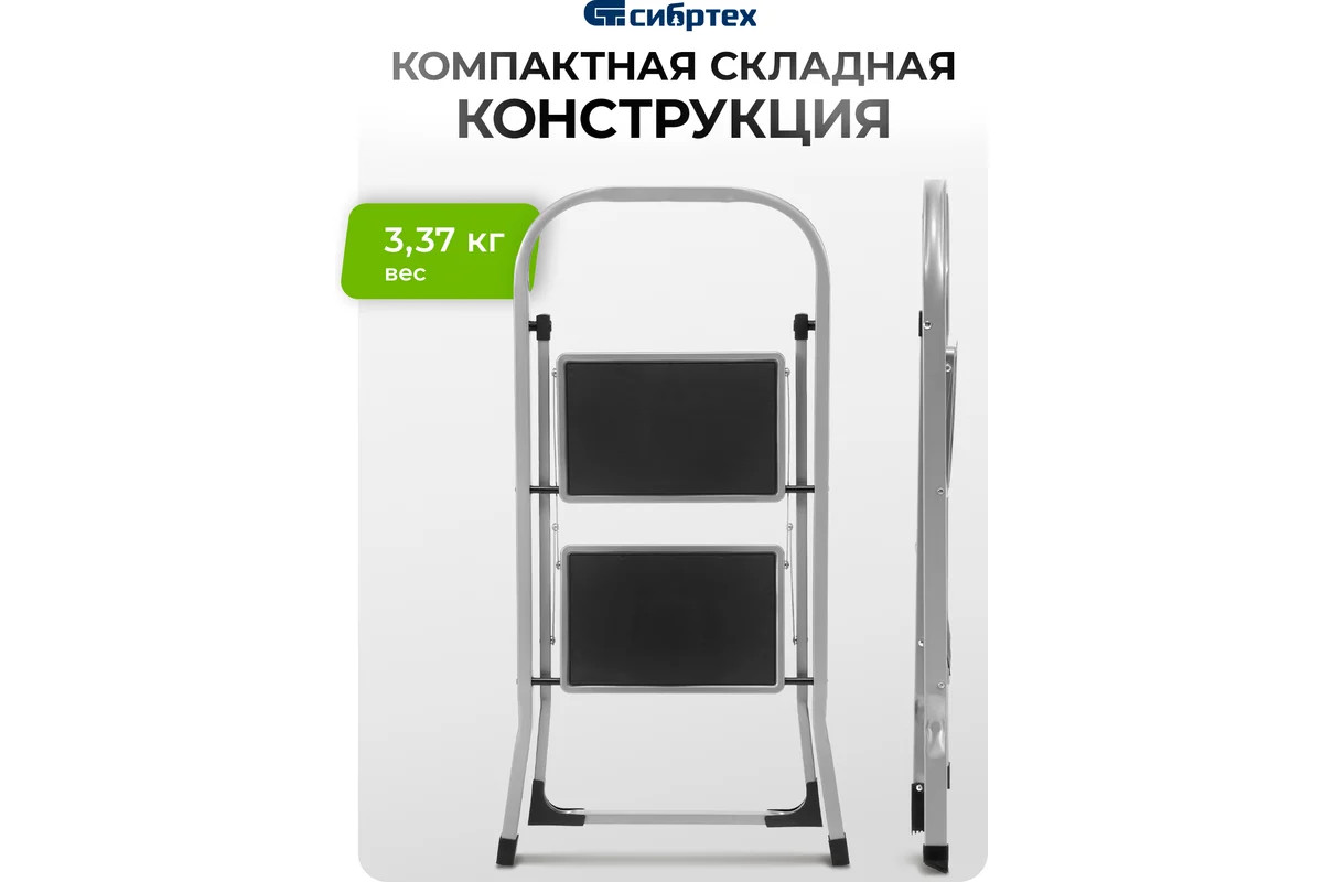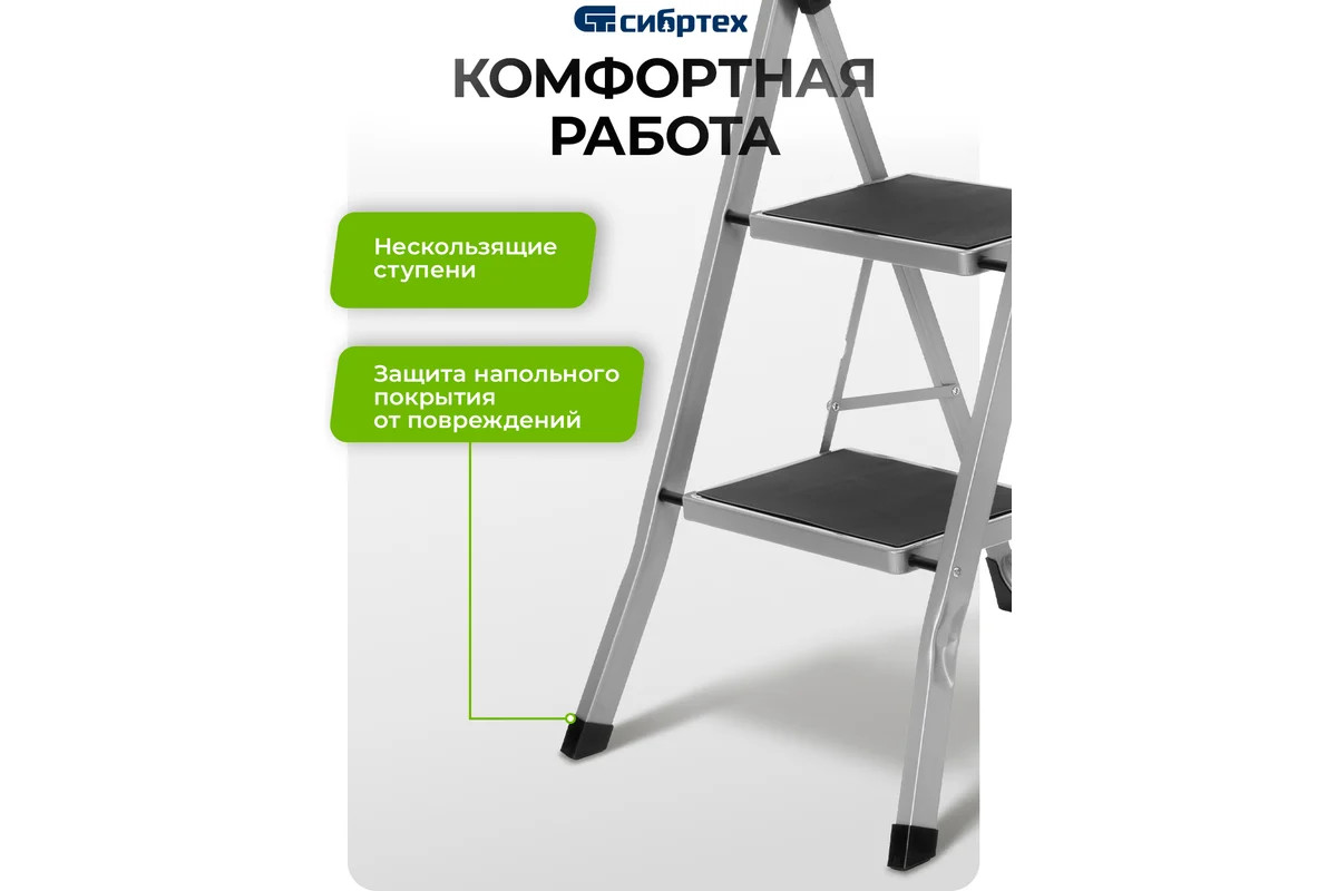 Стремянка стальная 2 ступени с резиновыми ковриками Сибртех