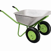 Двухколесная строительная тачка с пневмоколесом используется для перевозки садовых и строительных материалов. Два пневматических колеса способствует хорошей проходимости и отличаются бесшумностью при движении. Корыто из оцинкованной стали с полимерным покрытием отличается устойчивостью к воздействию коррозии для долгого срока службы. Резиновые накладки обеспечивают надежное удержание тачки. Объем кузова 110л, грузоп-сть 250кг, колесо 3.25-8, толщина метала кузова 0,7 мм, трубы 30*25 мм.