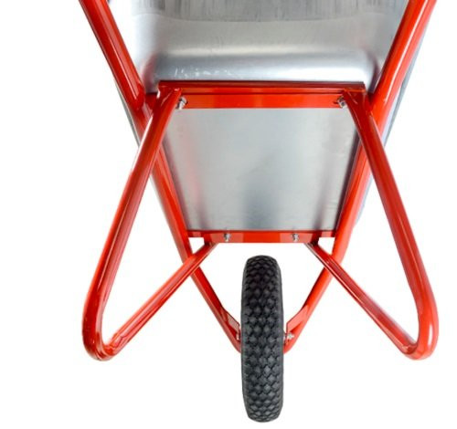 Специальная опора перед колесом для удобства выгрузки содержимого и защиты колеса от ударов. Крепкая металлическая рама. Повышенная маневренность благодаря одноколесной конструкции.