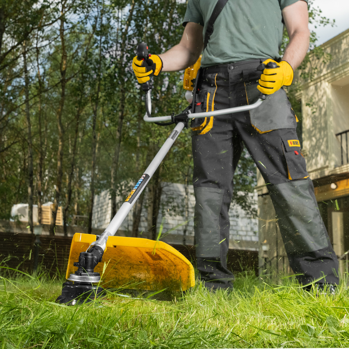 - Мобильность — вес триммера составляет всего 7 кг, поэтому его легко перемещать.
