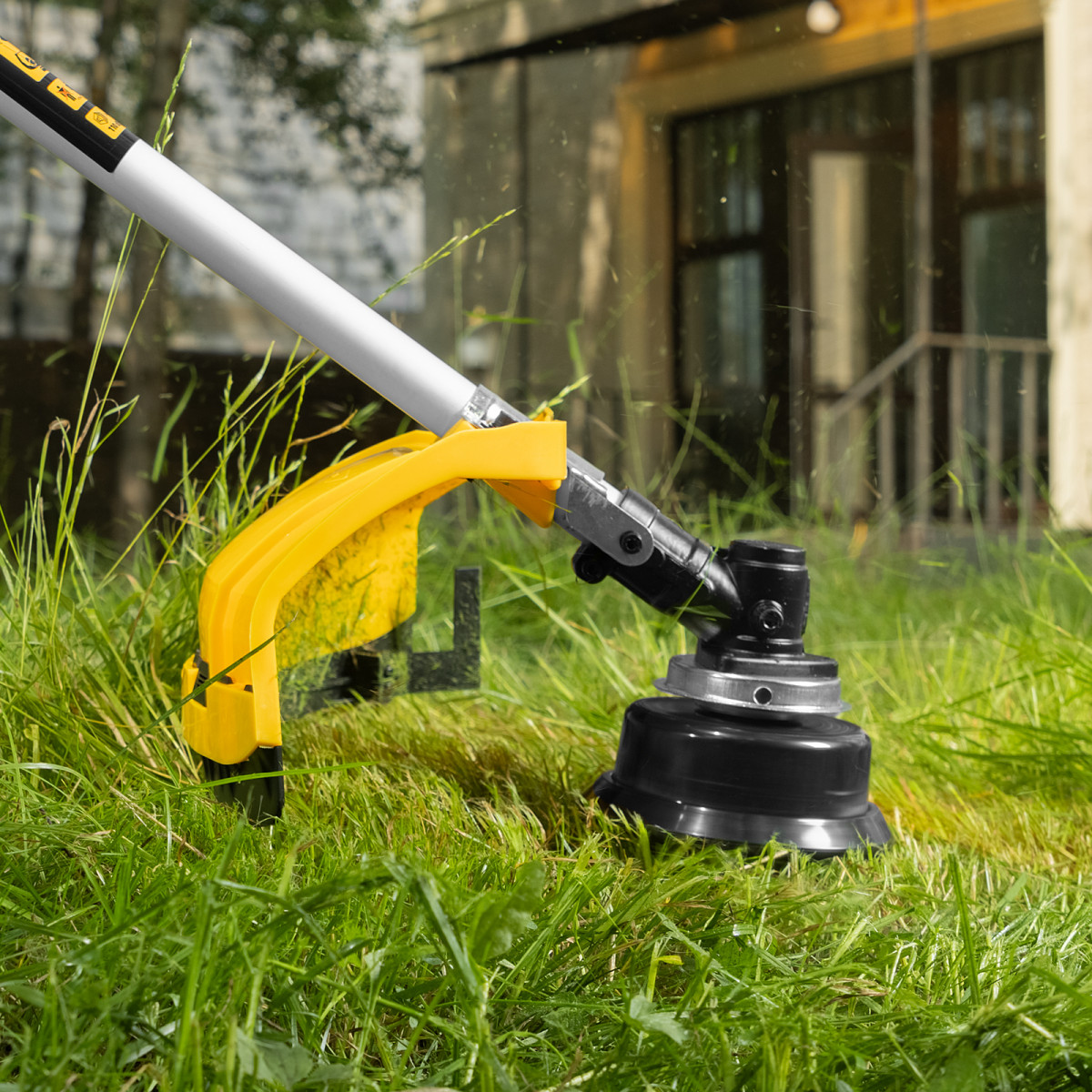 - Автоматическое укорачивание лески — в случае, если длина корда превышает допустимую, лезвие на кожухе триммера подрезает его, предотвращая лишнюю нагрузку на двигатель и его перегрев.
