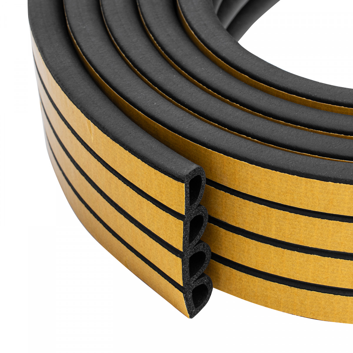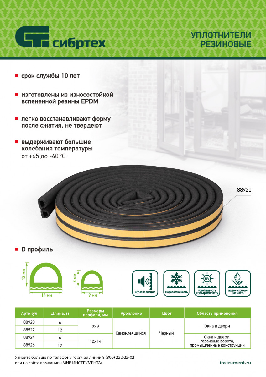 Уплотнитель резиновый 14х12 мм для широких щелей, 12 м, профиль "D", черный Сибртех