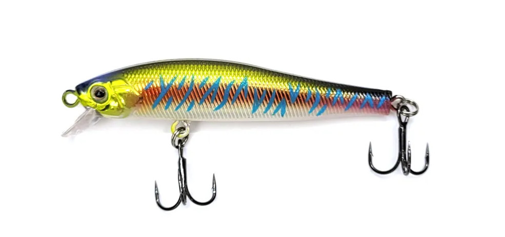 Namazu ImHo - это небольшой воблер, имеющий длину 75 мм и заглубляющийся до метра. Этим воблером очень удобно облавливать прибрежные ямки, вразличные канавы, в которых так любят устраивать засады на мальков всевозможные хищники. Namazu ImHo на равномерной проводке имеет свою мелкоамплитудную, низкочастотную и устойчивую игру, но не смотря на это, наилучшие результаты воблер показывает и на рывковых проводках (твичинговых).